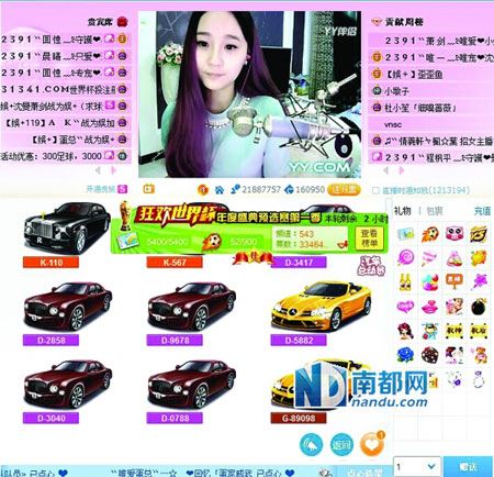 “我什么都沒得到,就是虛榮心得到了滿足!辟Z思杰告訴南都記者。去年年末,他在幾天內給沈曼刷了折合人民幣100多萬元的禮物,而他在YY上的總消費已經超過了300萬元。