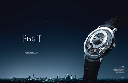 迷人的夜空掩映繁華的都市,伯爵的全新廣告形象訴說著繁華之上的極致人生。視覺效果簡潔低調(diào),卻又將廣告理念和品牌作品恰當(dāng)?shù)厝诤希P者認(rèn)為這是一組非常成功的平面廣告,值得借鑒和學(xué)習(xí)。近期伯爵也以“極致人生”為主題在官方微信平臺開展互動(dòng),邀請大家走進(jìn)伯爵專賣店參觀試戴,還有機(jī)會獲得伯爵饋贈的Piaget Rose伯爵玫瑰系列玫瑰金手鏈。