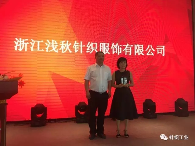姚偉平為浙江淺秋針織服飾有限公司頒發(fā)“全面戰(zhàn)略合作伙伴”獎杯