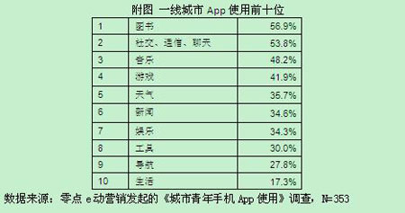 調(diào)查顯示,一線城市人群對(duì)于App的熱情遠(yuǎn)高于二三四線城市。并且,在商品生活消費(fèi)、社交通信、體育旅行、效率方面的App使用高于其他城市。其中,社交通信類App在一線城市使用率為53.8%,高出三四線城市十個(gè)百分點(diǎn)。任何事物的流行都有它的社會(huì)基礎(chǔ),微信微博得以在一線城市流行也不例外。