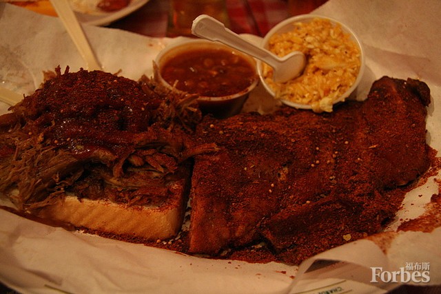我第一次去堪薩斯城還是幾年以前的事情,但我聽聞Arthur Bryant’s餐館已經(jīng)有幾十年了,卡爾文·特里林(Calvin Trillin)曾稱之為“世界上最棒的餐廳”。這種說法會(huì)不會(huì)有些……夸大其詞呢?總體來說,我對(duì)堪薩斯燒烤知之甚少,很難從遠(yuǎn)處進(jìn)行評(píng)判。所以我去了那里,做了評(píng)判,現(xiàn)在我成了它的信徒。我發(fā)現(xiàn)了堪薩斯城的兩個(gè)關(guān)鍵點(diǎn):1、如果你對(duì)醬料在燒烤中的作用有所懷疑,來試試吧,伙計(jì)!堪薩斯城醬料的品種和質(zhì)量非常驚人,一位得克薩斯州的美食作家曾把這里稱為“燒烤的拜占庭”,而這種說法自然也在其豐富、多樣的醬料中有所反映。2、盡管堪薩斯烤肉有很多種切法,但肉片三明治才是美食之王。這一切都齊聚在Arthur Bryant’s餐館,如今那里由呼呼作響的機(jī)器人負(fù)責(zé)對(duì)火腿、牛肉以及豬肉進(jìn)行完美的切割(這樣廚師們才能應(yīng)付源源不斷的客流),而美味的燒烤醬料伸手可得。如此獨(dú)樹一幟真是美食界的一座豐碑!但它稱得上是世界上最好的餐館嗎?我說不準(zhǔn)卡爾文是否真心這么覺得,但我個(gè)人認(rèn)為還是有幾分可信度的。