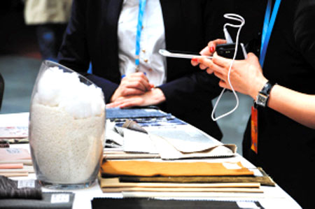 “在原有語音、表情、寫字等互動功能的基礎(chǔ)上,增加了自定義菜單,除了每天可以編輯一條微信之外,朋友圈可以通過自定義菜單,看到‘購物專區(qū)’、‘品牌專區(qū)’、‘個人中心’這三大菜單,實現(xiàn)更便捷、更深入的互動!备=ń鹪贩椨邢薰酒放撇肯嚓P(guān)負(fù)責(zé)人湯忠傳一邊介紹一邊演示如何進(jìn)行微信購物。