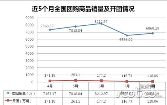 同期相比,每年的4月—9月是團購市場的平穩(wěn)期,交易額與銷售量呈現(xiàn)穩(wěn)重上升總趨勢,不會出現(xiàn)較大波動。同樣,今年的8月份依舊保持原有穩(wěn)定步調(diào)。