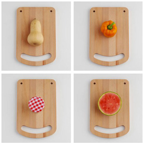 讓我們在廚房的時間里變得更快樂一些!這塊砧板的扶手與兩個掛孔組合起來就是一副笑臉的模樣。