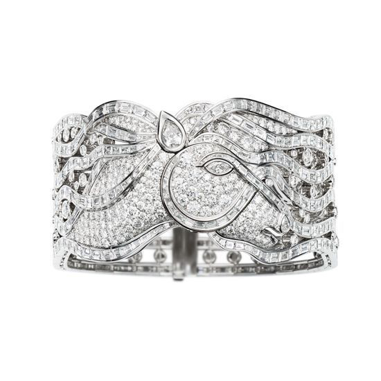 天馬是中國藝術(shù)中一個饒富剛勁力量的美學(xué)主題。只有最卓越的工藝大師才能以高級珠寶腕表再現(xiàn)這自然世界極致美感的象征。在設(shè)計的初期,腕表制作和寶石鑲嵌工藝就已經(jīng)被納入考量因素,Piaget伯爵的設(shè)計師以寶石的筆觸描畫駿馬纖巧立體的外形,其起伏的肌理和陰影即限制了所用寶石的大小。立體珠寶腕表蠟?zāi)M耆鶕?jù)設(shè)計稿打造,使工匠能直觀地一覽實際設(shè)計效果。精密估量腕表的體積和比例后,工匠便開始尋求腕表各部分間的怡人和諧。根據(jù)蠟?zāi)hT造的白金腕表化身素凈的底盤,璀璨美鉆鑲嵌其中。經(jīng)寶石切割師嚴格篩選,這些閃耀寶石甚至將腕表升華至超凡脫俗的境界。