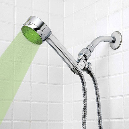 這是一個(gè)創(chuàng)新的淋浴頭,它可以通過(guò)視覺(jué)就知道水的溫度,水溫主要是通過(guò)淋浴頭LED燈光來(lái)區(qū)別,它有一個(gè)傳感器裝載淋浴頭上,水溫在50度以下的顯示藍(lán)色,50度到70度的顯示綠色,當(dāng)水溫達(dá)到80度以上的時(shí)候顯示為紅色,這時(shí)候水就會(huì)很燙了