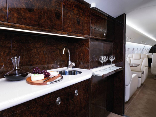 在一些容易潮濕的區(qū)域,如后艙衛(wèi)生間,6種材質(zhì)的石材地面可供客戶選用。在過道和衛(wèi)生間使用天然花崗巖賦予客艙奢華、精致之感,萊格賽650更是由此引領(lǐng)公務(wù)航空市場的潮流趨勢。