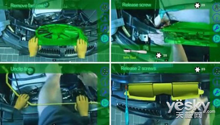 對了,還可以通過智能眼鏡輕松準(zhǔn)確的接收提示信息。比如當(dāng)車輛行駛在建筑稠密的街道時,在接近路口時,相近的車輛會互相提示,這樣就可以大大減少刮蹭事故的發(fā)生;同時,提示信息甚至可以輔助用戶維修和養(yǎng)護(hù)汽車。