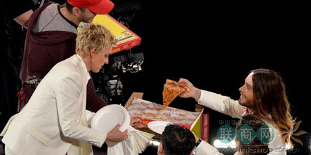 主持人Ellen在現(xiàn)場(chǎng)用了約2分鐘的時(shí)間給在場(chǎng)明星分披薩,然后又花了1分鐘湊錢給外賣小伙,所以預(yù)估這次給Big Mama's and Papa's pizzeria做的免費(fèi)廣告價(jià)值1080萬(wàn)美元。