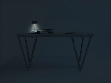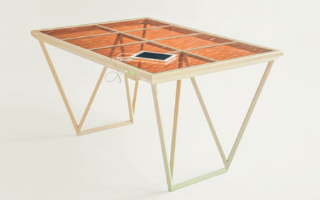 Current Table 的玻璃表面包含染料合成的太陽(yáng)能電池,基于“光合作用”使用顏色特性來(lái)形成電流(類似植物光合作用,吸收光能)。跟傳統(tǒng)的太陽(yáng)能電池不同,有色電池不需要陽(yáng)光直射,它可以在漫射光條件下發(fā)揮作用。