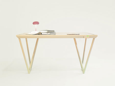 荷蘭設(shè)計(jì)師 Marjan Van Aubel 設(shè)計(jì)了可以收集光能的桌子 Current Table。這款桌子白天可以收集并儲(chǔ)存能量,以供電燈、電腦、手機(jī)等設(shè)備進(jìn)行充電。