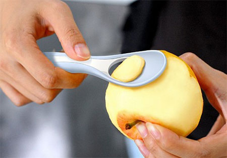 這個(gè)明顯是為孩子們所設(shè)計(jì),非常方便,可以輕松的將削好的水果,變成小塊放在勺子里喂給孩子,簡單安全有趣的方式。