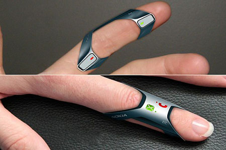 這款戴在手指上的手機(jī),是由柔軟的硅膠和彈性橡膠制作的。它不僅具有短信和說(shuō)話(huà)的基本功能,還可以防水。通知是通過(guò)振動(dòng)收取,所有的按鈕設(shè)置都符合人體工程學(xué)的設(shè)計(jì)。你可以戴著它在游泳池暢游,或把它纏在手指,它看起來(lái)非常的輕便。
