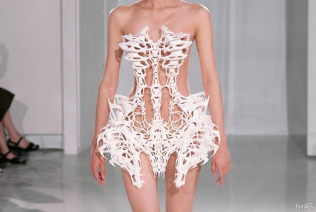 艾里斯·范·荷本(Iris van Herpen)用數(shù)字技術(shù)打造新款時(shí)裝。這位年輕的荷蘭設(shè)計(jì)師接受的是傳統(tǒng)的高級(jí)定制時(shí)裝培訓(xùn),她在過去幾年頗具創(chuàng)意地嘗試用3D打印機(jī)制作服裝:通過編碼而不是編織打造時(shí)裝。這項(xiàng)技術(shù)具有相當(dāng)顯著的潛力,《時(shí)代》雜志(Time Magazine)把范·荷本設(shè)計(jì)的一件連衣裙評(píng)選為2011年五十大發(fā)明創(chuàng)造之一,她經(jīng)常和增材制造公司合作,為他們的機(jī)械設(shè)備開發(fā)新市場(這種技術(shù)擁有廣泛的可能性,從即時(shí)送貨的網(wǎng)上購物到配合試衣算法的高定時(shí)裝。)。艾里斯·范·荷本連衣裙的風(fēng)格表明,這些服裝是概念性。她最出色的設(shè)計(jì)作品同時(shí)適合博物館及秀場或舞廳。