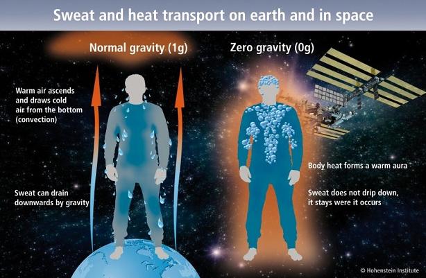 地球上Space-proven極端情況: 在零重力下,肌肉和骨骼組織很快開始分解。在這一過程中,身體散發(fā)的熱量和在地球上一樣,并試圖釋放自己降溫,蒸發(fā)汗水。然而,在空間圍繞身體的熱量幾乎像一個(gè)光環(huán)。這意味著身體失去了冷卻效果.培訓(xùn)給予生理壓力大于它在地球上。