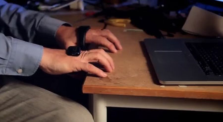 這些測量后的數據將無線傳輸到谷歌眼鏡里,接著在用戶視野中展現一個虛擬鍵盤。當用戶在平面上開始輕敲時,虛擬鍵盤的按鍵會被相應激活。智能手環(huán)還允許鼠標和手勢控制——因此需要確定用戶手掌所在的位置。其實,利用這個技術能做的事遠不止是打字,比如說控制游戲或指揮音樂!