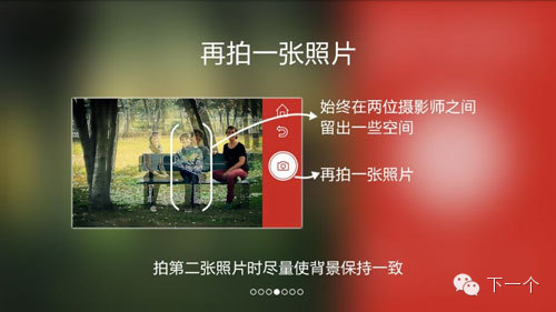 首先,進(jìn)入應(yīng)用后選擇“合照”模式。大家擺好姿勢(shì),讓第一個(gè)攝影師拍照,完成后取景框中會(huì)出現(xiàn)第一張照片的殘影。