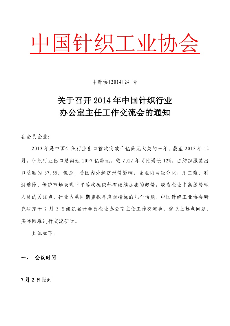中國針織行業(yè)辦公室主任會(huì)的通知