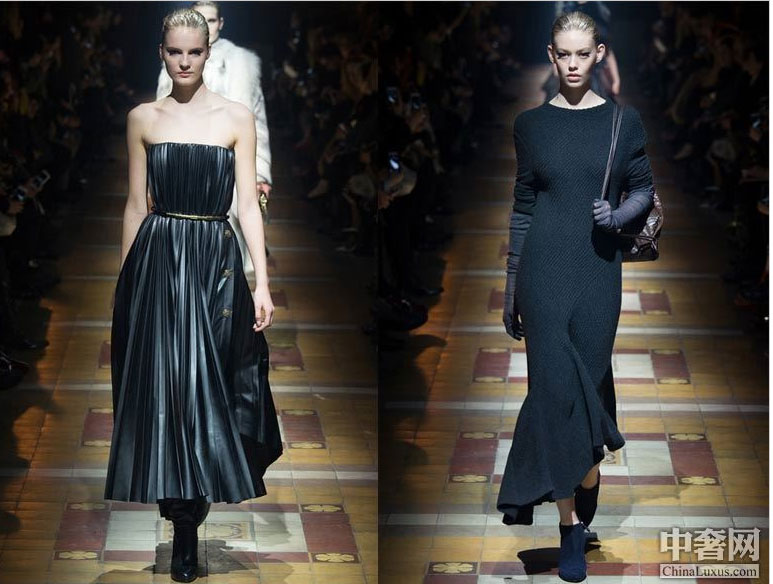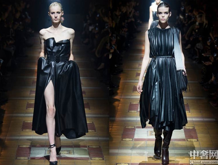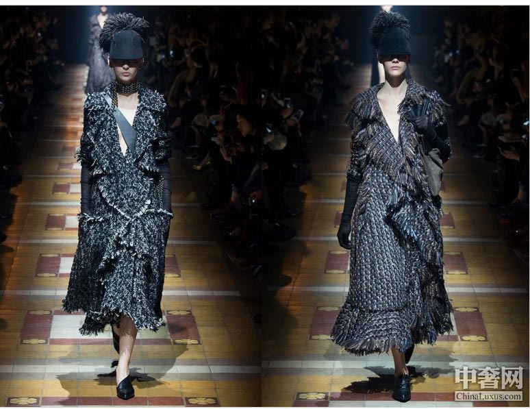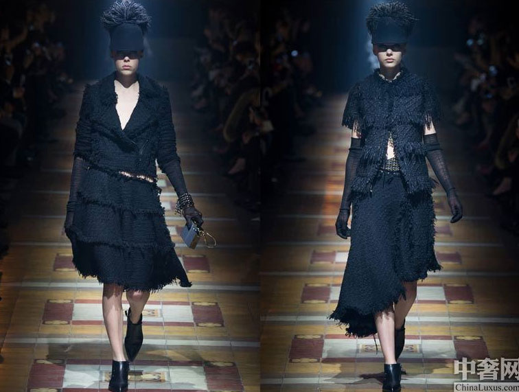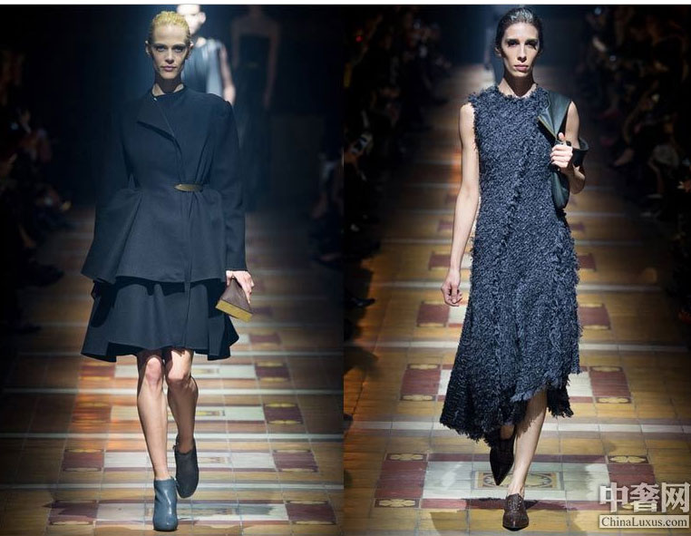 朗雯(Lavin)發(fā)布了2015年早春度假系列。在這個(gè)系列中,Alber Elbaz選用了黑色為主調(diào),整個(gè)T臺(tái)的燈光布置強(qiáng)烈烘托出服裝在模特身上的明暗對(duì)比關(guān)系。這一系列還運(yùn)用了皮草元素,讓狂野之美覆蓋都市之風(fēng)。