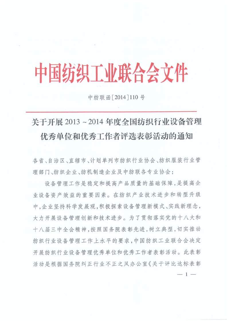 紡織行業(yè)設(shè)備管理優(yōu)秀單位和工作者評選