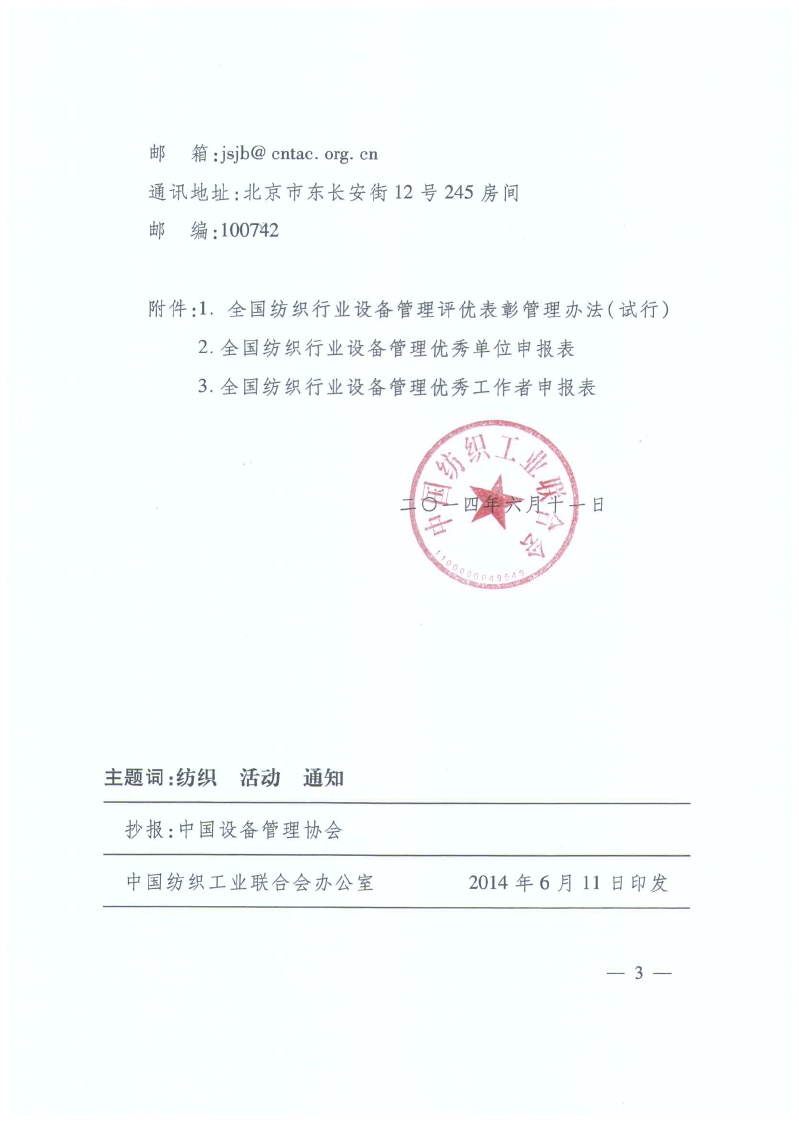 開展中國紡織行業(yè)設(shè)備管理優(yōu)秀單位評選表彰活動通知