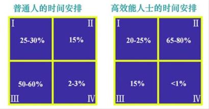 高效能人士的時間安排是,把65%-80%的時間安排在重要但不緊急的工作,由于他們把大部分工作都提前統(tǒng)籌和規(guī)劃好了,其余象限的工作自然而然就減少了。
