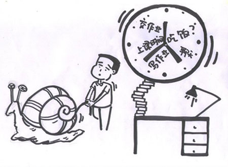 要改變拖沓的習慣,還可以嘗試使用一個最簡便的方法,就是在做某項工作時,為自己設(shè)定一個TIMER(時間),比如寫一篇稿子或一篇匯報,為自己設(shè)定半個小時或一個小時,然后用倒計時的方式,開始工作,這樣的訓練,你會發(fā)現(xiàn)比平時做同樣的工作,節(jié)省不少時間,原先寫報告前的各種情緒預備工作等全部簡化了,工作效率大大提高。