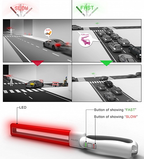 我發(fā)現(xiàn)用帶有應(yīng)用程序的設(shè)備來(lái)管理交通比傳統(tǒng)警示設(shè)備系統(tǒng)更迷人?梢灶A(yù)見(jiàn),接力棒式引導(dǎo)交通用創(chuàng)造性的方式豐富了多彩的信號(hào)顯示。
