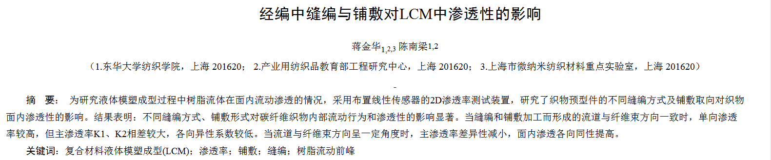 經(jīng)編中縫編與鋪敷對LCM中滲透性的影響