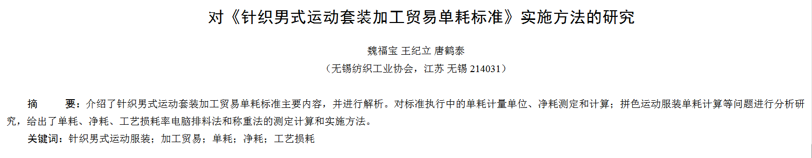 對(duì)《針織男式運(yùn)動(dòng)套裝加工貿(mào)易單耗標(biāo)準(zhǔn)》實(shí)施方法的研究