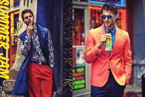 捷克頂級男模Tomas Skoloudik為我們演繹了兩種不同的夏日風(fēng)格,黑色皮衣內(nèi)搭牛仔襯衣,巴洛克風(fēng)格的短靴露出黑色襪子,酷感十足。另一組照片上Tomas Skoloudik身穿天藍(lán)色帶圖案襯衣,一身白褲,純凈夏日風(fēng)格迎面撲來。