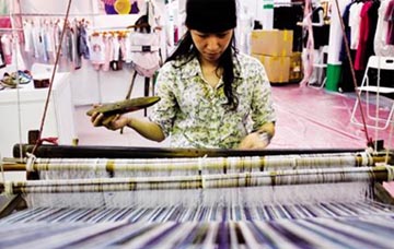 在中國,紡織與印染技藝有著幾千年的歷史,手工織成的土布更是人們?nèi)粘I畹谋貍淦。鄭芬蘭說,這種土布因為不上漿、不添加化學制劑,經(jīng)70多道工序手工織就,是純天然的綠色布料。同時,傳統(tǒng)土布粗老笨拙的缺點被“小巷三尋”運用現(xiàn)代工藝逐一克服,而柔軟舒適的特性被完整地保留下來,也因此成為土布演繹時尚的服飾品牌。