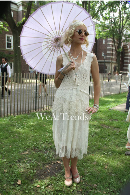 現(xiàn)代的霓裳逝去,復古的時期到來,在總督導里你看到的會是20年代特有的食物,古老而有情調(diào)的恰恰人群,一戰(zhàn)時的戰(zhàn)士,出入于晚宴的歌女,浮華的蕾絲裙,復古的轎車展覽,古著服裝集市,不斷涌現(xiàn)的爵士樂,各路女星都展現(xiàn)自己完美的身材以及嫵媚的眼神,而男性們盡顯他們的紳士魅力,與異性相互交談甚歡,猶如回到了過去。女士身上的蕾絲、亮片、羽毛、高筒襪、花朵頭飾、以及各式復古的洋傘,男士身上的素色西裝、騎馬裝、軍服、英倫皮靴、吊帶裝、格紋等單品,這里不是電影場面,這是一場優(yōu)雅迷人的盛大派對,也是一場復古迷們的瘋狂聚會。
