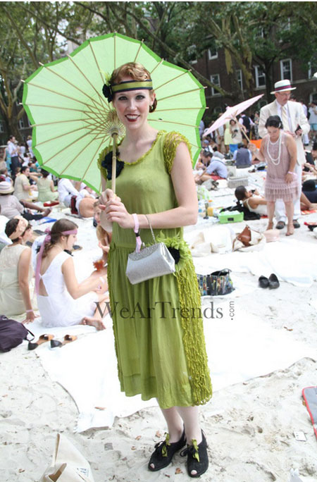 爵士時代是一戰(zhàn)后經(jīng)濟蕭條的十年時間,呆板而枯燥的人生已經(jīng)被大多數(shù)人所壓倒,那時候享樂主義開始翻涌,掀起了一個時代的藝術,一個揮金如土的時代,也是一個充滿嘲諷的時代。而為了重溫20世紀20年代看似浮眼煙云的十年,每年夏季的“爵士時代”草坪聚會都會在紐約總督導舉辦,而今年的各路型人的風光亦不容錯過。