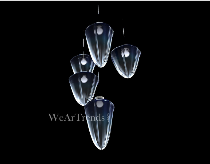 美國產(chǎn)品設(shè)計大師Alvaro Uribe為加拿大品牌Tsunami打造的一系列照明設(shè)備Iceberg,汲取巨型冰山框架的結(jié)構(gòu)美為設(shè)計靈感,從人類腦海中想象的冰山畫面出發(fā),以全新的表現(xiàn)形式呈現(xiàn)于眼前。一座座山倒掛的小型“冰山”,以流暢順滑的線條柔化現(xiàn)實中棱角分明、邊緣鋒利的冰山形象,光線透過厚厚的玻璃時產(chǎn)生光的漫射,在其表面形成漸變的即視感,從下而上顏色逐漸加深,由白及藍。設(shè)計師Alvaro表示,這不是采用一般產(chǎn)品的設(shè)計方法,而是通過創(chuàng)新實現(xiàn)只有水能創(chuàng)造的形式和造型,白色和藍色在玻璃雕塑中折射出無比美麗的光線。