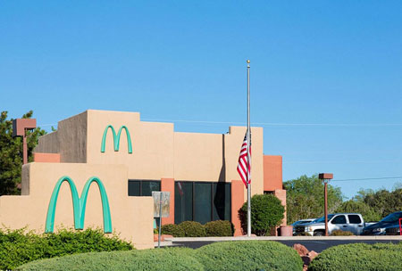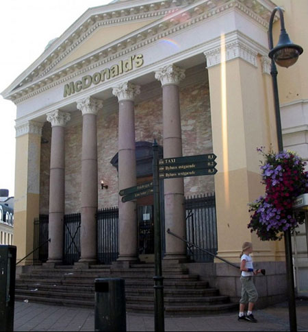 據(jù)英國(guó)《每日郵報(bào)》報(bào)道,美國(guó)麥當(dāng)勞連鎖店在全球有多達(dá)超過(guò)3.5萬(wàn)家餐館,為118個(gè)國(guó)家提供食物。這些店并不像人們想象的那樣千篇一律。實(shí)際上,這一連鎖店中的分店或以其特殊的選址,或以其獨(dú)特的造型為食客帶來(lái)不同的感受。位于美國(guó)的一家麥當(dāng)勞店建在了一個(gè)19世紀(jì)喬治王時(shí)代藝術(shù)風(fēng)格的建筑內(nèi),而另一個(gè)則位于改造后的20世紀(jì)30年代的裝飾藝術(shù)旅館內(nèi)。