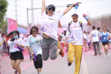 今年以來(lái),杭州多家商場(chǎng)舉辦彩虹跑,以吸引年輕人。
