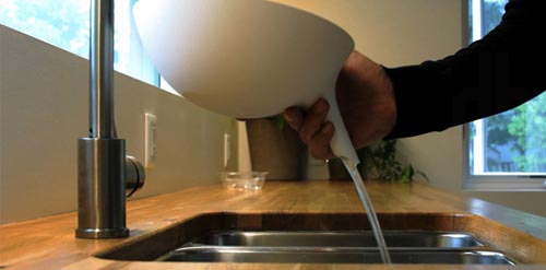 由caveman factory設(shè)計的anton濾斗碗,這只碗特別添加了一只巧妙的漏斗把兒,在浸泡果蔬等食物之后,很容易就能把剩下的水排倒在水槽、杯子或者是室內(nèi)植物里。它還可以作為一件普通的容器,把水果和飯菜端上餐桌。