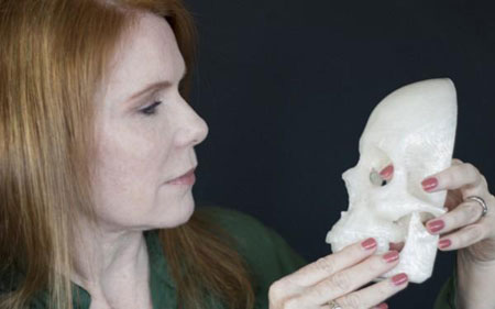 通常來說,移除 Scott 的腫瘤,需要使用顱骨切開術(shù)。這是一項(xiàng)風(fēng)險(xiǎn)很高的手術(shù)。Micheal 希望找到一種更為保險(xiǎn)的醫(yī)療方式。他下載了一個(gè)名為 InVesalius 的軟件。這個(gè)軟件由巴西的一家研究中心開發(fā),能夠把磁共振數(shù)據(jù)轉(zhuǎn)換為 3D 圖像。通過該軟件,他把妻子的醫(yī)療圖像轉(zhuǎn)換為 3D 格式,發(fā)送給一些神經(jīng)外科醫(yī)生,希望能夠找到新型療法。后來,匹茲堡大學(xué)醫(yī)學(xué)中心的一位醫(yī)師說,他可以采取微創(chuàng)傷手術(shù)移除腫瘤。于是,Micheal 用 MakerBot 打印了全尺寸的頭骨,寄給了這位醫(yī)師,幫助他計(jì)劃手術(shù)的細(xì)節(jié)。