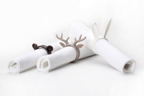Wishlist為餐桌創(chuàng)造了nakpin zoo餐巾環(huán),這些產(chǎn)品借用了不同森林動(dòng)物的形狀,將制作成的熊、兔子和鹿的耳朵圈上餐巾,讓就餐變得更為有趣。