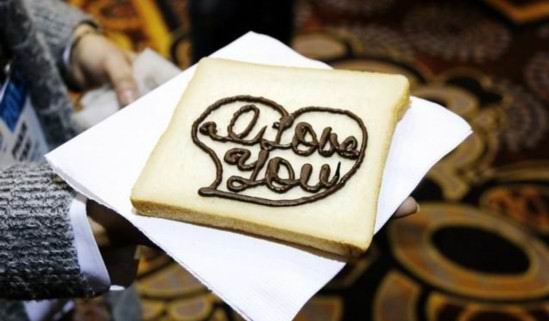 對(duì)于情侶而言,制造浪漫是非!奥闊钡氖虑,不過(guò)有了XYZpringting推出的可以打印的烘培機(jī)一切都不是問(wèn)題,它可以在面包、餅干等食品上“打印”出自己喜歡的文字或圖案,制造暖暖的浪漫情懷。