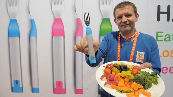 幫助你減肥的餐具 智能餐具HAPIfork可謂是減肥人士們的福音。因?yàn)榫邆渌{(lán)牙傳輸,電容式傳感器和振動(dòng)電機(jī)的它可以記錄你吃了多少口,你吃的有多快,甚至還可以記錄你講食物從盤(pán)子送到嘴里花了多少時(shí)間。盡管一把叉子要花99.99美元,但是發(fā)明者Hapilabs解釋道的:“進(jìn)餐時(shí)吃太快會(huì)導(dǎo)致體重增加,于是開(kāi)發(fā)了這樣一把智能叉子來(lái)提醒人們減慢吃飯速度,從而減輕體重!