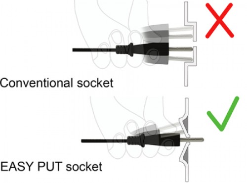 這款凹口插座有著一個類似火山口的設計,方便你在看不清或難以準確定位時將插頭插對位置,很貼心的改良。