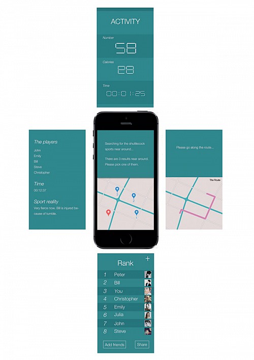 “Cokick”是一個(gè)智能毽子的設(shè)計(jì)概念,不同于傳統(tǒng)毽子,這款智能毽子擁有極簡(jiǎn)、時(shí)尚的外觀,羽毛采用新型絲質(zhì)纖維,讓毽子更輕巧且更易于掌控。此外,智能毽子可以實(shí)時(shí)記錄各項(xiàng)運(yùn)動(dòng)數(shù)據(jù)、身體功能指數(shù),通過(guò)配套的移動(dòng)終端,還能實(shí)現(xiàn)社交互動(dòng)功能,如朋友之間上傳運(yùn)動(dòng)成果進(jìn)行排名。