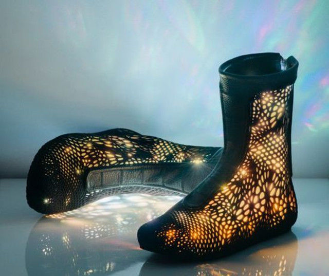 這樣定制出來(lái)的鞋子到底長(zhǎng)什么樣?根據(jù)放出的效果圖,是否好看見(jiàn)仁見(jiàn)智。鞋子的外面是皮革,不過(guò)皮革里面植入了運(yùn)動(dòng)傳感器,而腳踝區(qū)域?qū)⒀b上 3D 打印的硅膠氣囊,能夠通過(guò)充氣和放氣的改變支撐力度。更令人印象深刻的是,鞋子上還安裝了色彩感應(yīng)攝像頭和 RGB LED ,可以根據(jù)穿戴者的衣著改變不同的顏色。