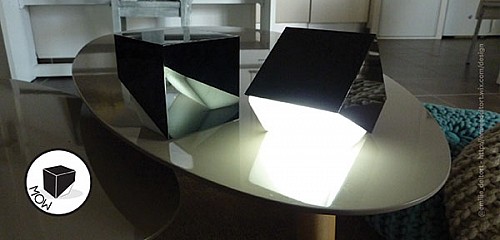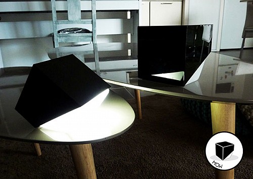 MOW就是一個(gè)簡單的黑方塊,這個(gè)黑色方塊的一角被設(shè)置上了傾斜的燈。設(shè)計(jì)師Emilie Deltort為MOW設(shè)計(jì)了一個(gè)巧妙的開關(guān),MOW是通過旋轉(zhuǎn)打開和關(guān)閉的,簡單地旋轉(zhuǎn)燈體,不但可以打開燈,甚至還可以改變燈光的顏色。