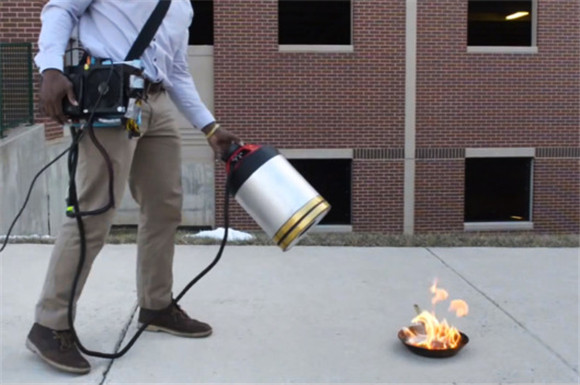 來自美國喬治梅森大學(xué)工程專業(yè)的Seth Robertson和Viet Tran,花了一年時間研究出手提式聲波滅火裝置。它能發(fā)出30至60赫茲的低頻聲波,在短短幾秒鐘內(nèi)將火撲滅。