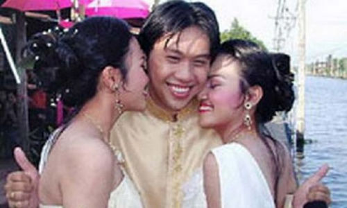 泰國(guó)一名男子從小與一對(duì)雙胞胎姐妹青梅竹馬,到談婚論嫁的時(shí)候,實(shí)在無(wú)法決定更愛(ài)哪個(gè),干脆一起娶回家,三人一起過(guò)起了幸福生活。