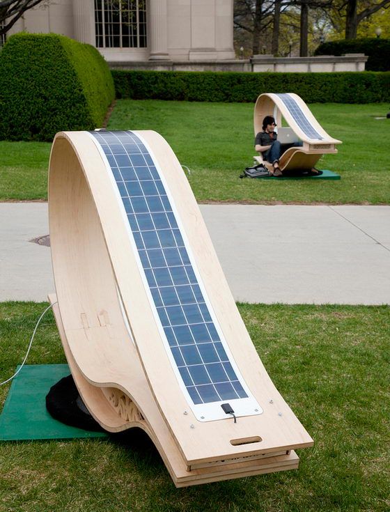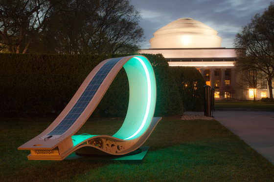 Soft Rocker是麻省理工學院建筑系學生在希拉·肯尼迪(Sheila Kennedy)教授的幫助下,開發(fā)的一款現(xiàn)代太陽能木質(zhì)戶外躺椅。它采用舒適軟木制作而成,整體造型符合人體功能學。它配備了一個35瓦的太陽能跟蹤系統(tǒng),,并將收集的電能都儲存在12安培的電瓶里。然后利用底部的互動式轉(zhuǎn)軸,實時追蹤太陽方位以調(diào)整太陽椅的朝向獲取最多能量的太陽能,從而為手機等電子設(shè)備提供充電。
