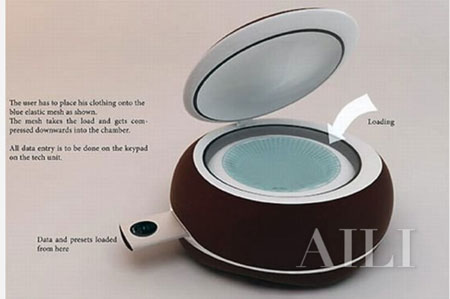 伊萊克斯Renew概念蒸汽機(jī),由美國普渡大學(xué)Louis Filosa設(shè)計(jì),一臺(tái)由可回收的鋁和玻璃制成的蒸汽機(jī),用來潔凈衣物。它與下文提到的Pebble同屬一個(gè)系列, Renew的洗滌過程快速簡單,使用蒸汽讓衣物煥然一新。此外,它還采用了無線射頻識(shí)別裝置(RFID)和紅外掃描儀,為用戶提供有關(guān)面料成分和衣物狀況的信息。更令人感到欣喜的是,它還支持Wi-Fi連接和OLED觸摸屏界面,讓操作更為簡便。用戶只需要像刷卡一樣把衣服從Renew中刷一遍,就會(huì)立即讓衣物煥然一新。